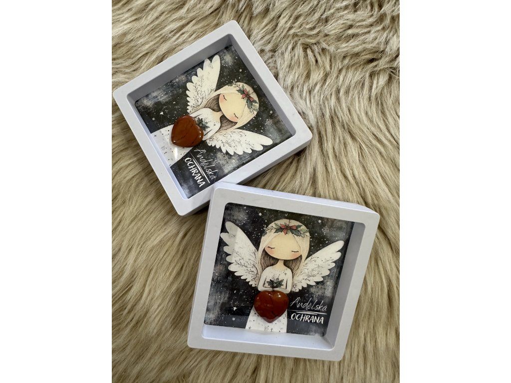 Obrázek andělky  s minerálním srdíčkem