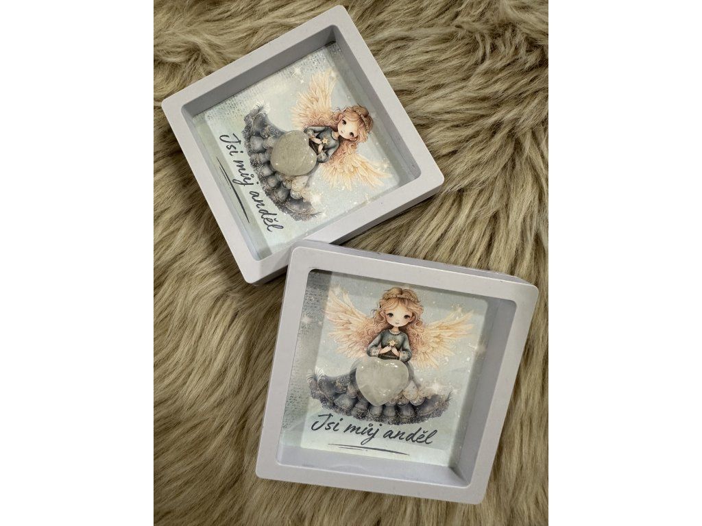 Obrázek andělky  s minerálním srdíčkem