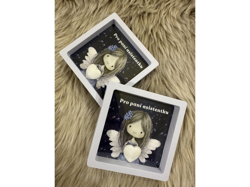 Obrázek andělky  s minerálním srdíčkem pro paní asistentku