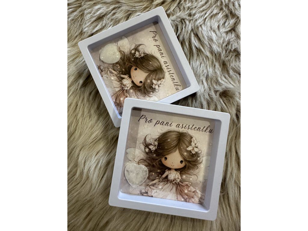 Obrázek andělky  s minerálním srdíčkem pro paní asistentku