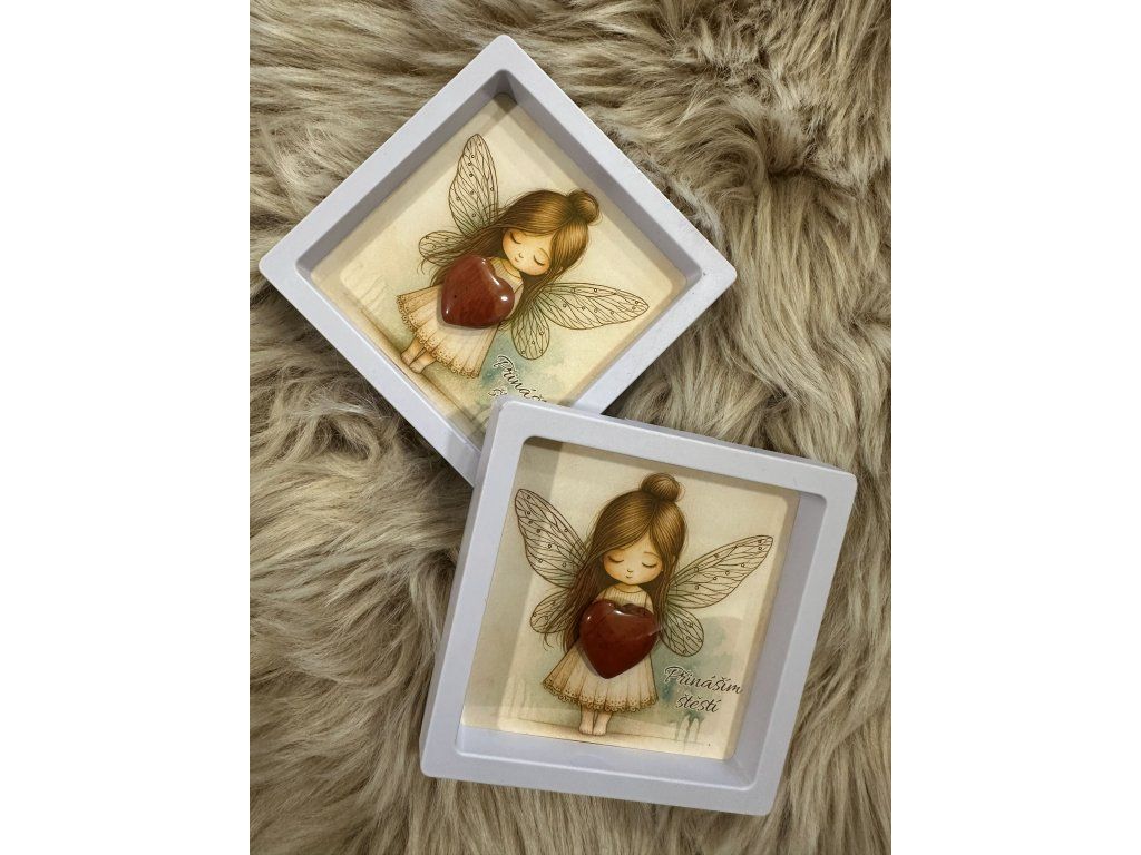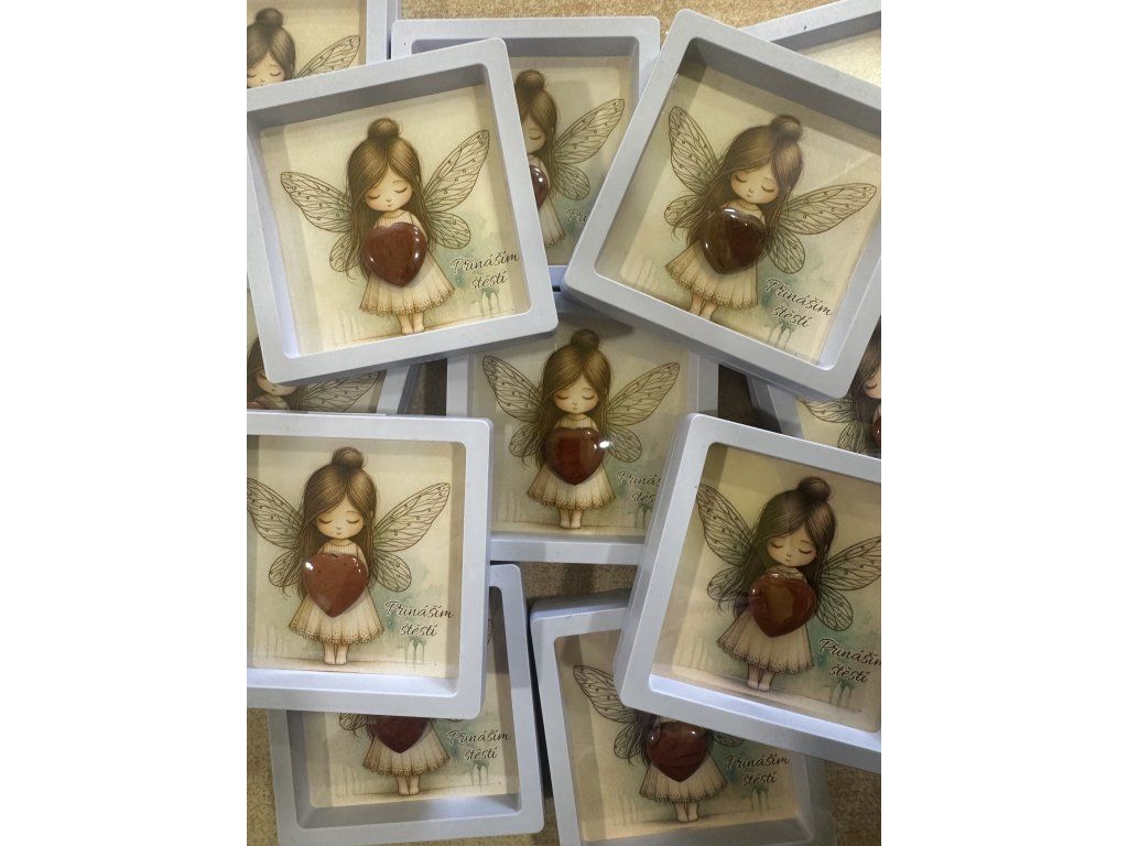 Obrázek andělky  s minerálním srdíčkem
