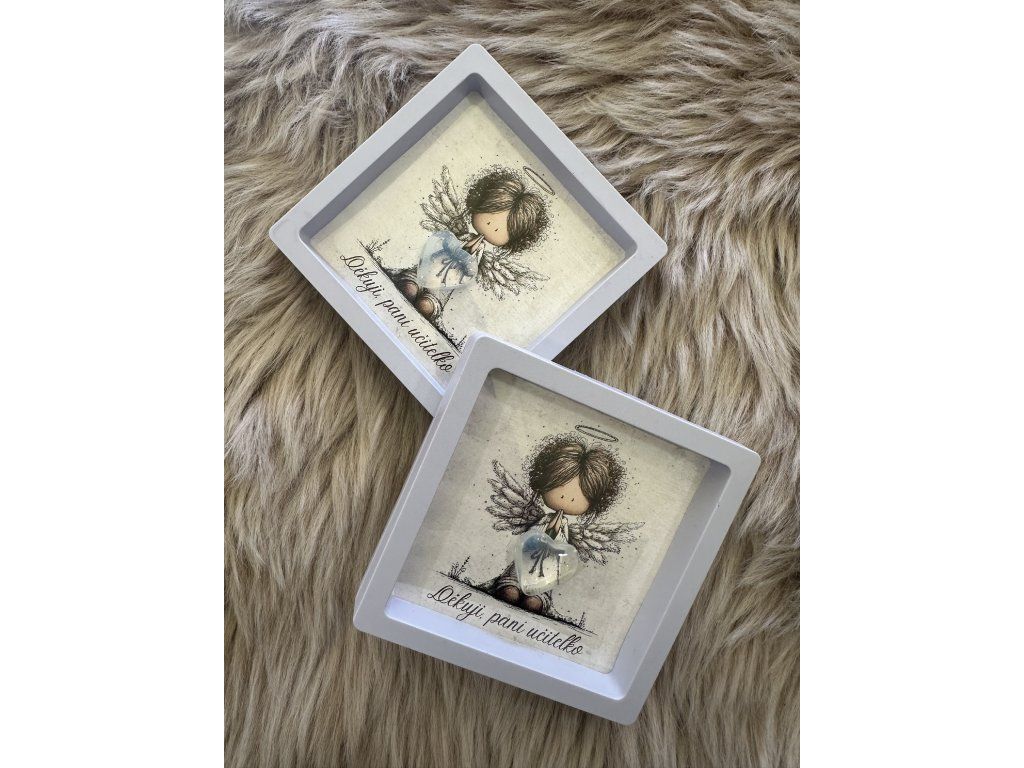 Obrázek andělky  s minerálním srdíčkem pro paní učitelku