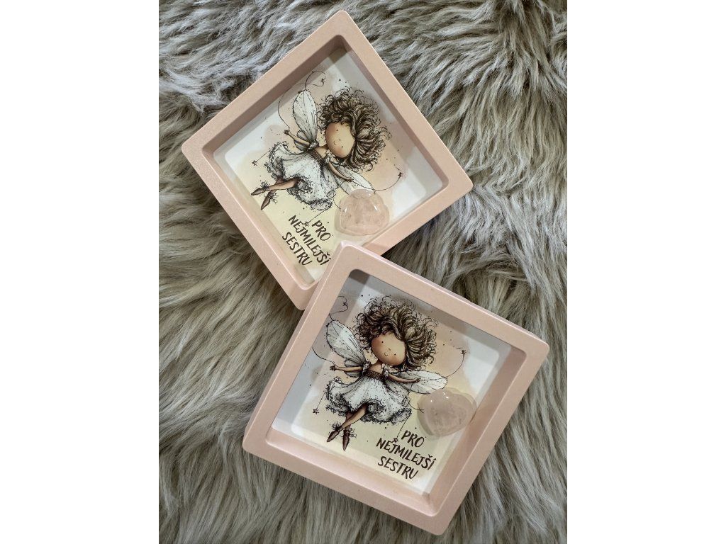 Hledáš jedinečný dárek pro sestru? Máme pro tebe elegantní plastovou růžovou otevírací krabičku s minerálním srdíčkem a vloženou kartou andělky.