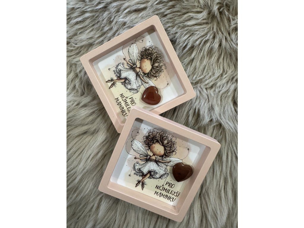 Hledáš jedinečný dárek pro maminku? Máme pro tebe elegantní plastovou růžovou krabičku s minerálním srdíčkem a vloženou kartou andělky.