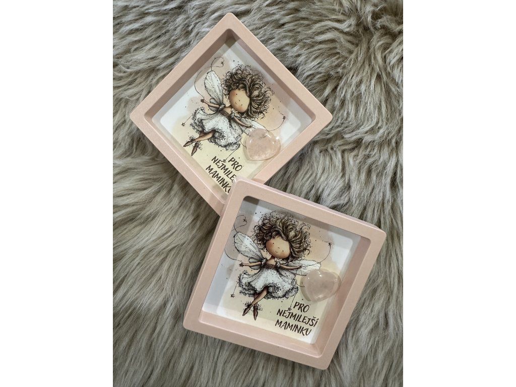 Hledáš jedinečný dárek pro maminku? Máme pro tebe elegantní plastovou růžovou otevírací krabičku s minerálním srdíčkem a vloženou kartou andělky.