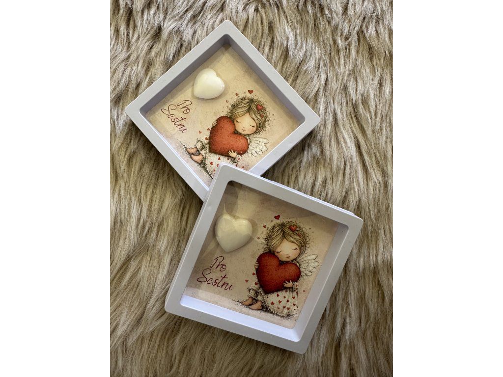 Hledáš jedinečný dárek pro sestru? Máme pro tebe elegantní plastovou bílo-šedou otevírací krabičku s minerálním srdíčkem a vloženou kartou andělky.