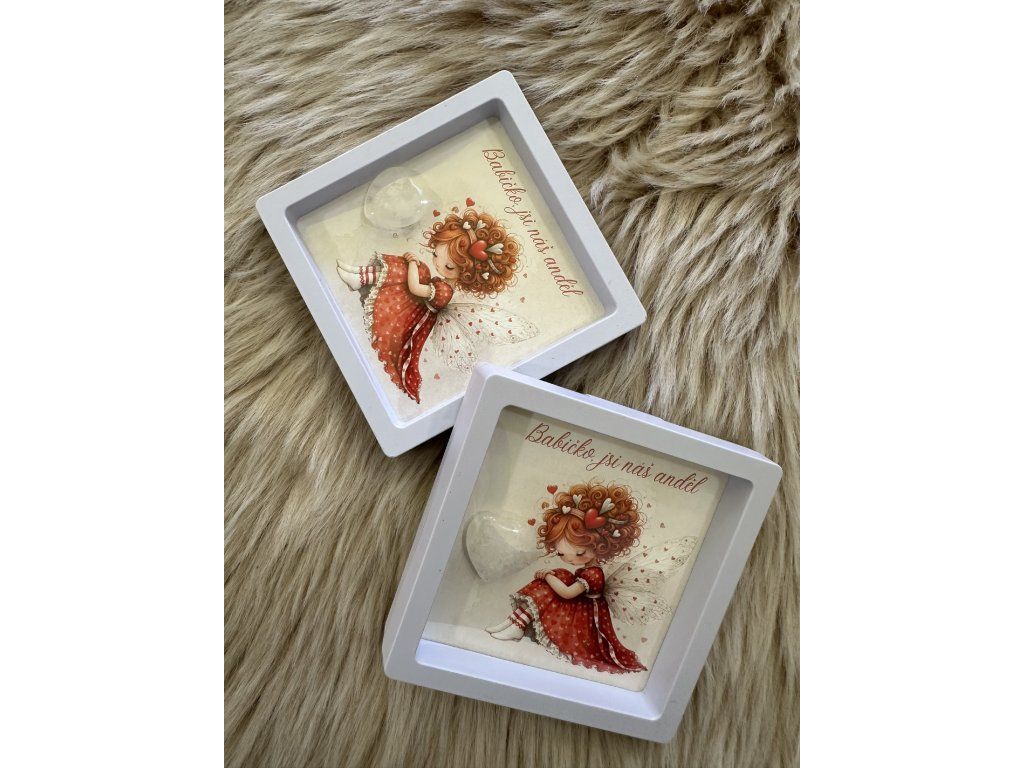Hledáš jedinečný dárek pro babičku? Máme pro tebe elegantní plastovou bílo-šedou otevírací krabičku s minerálním srdíčkem a vloženou kartou andělky.