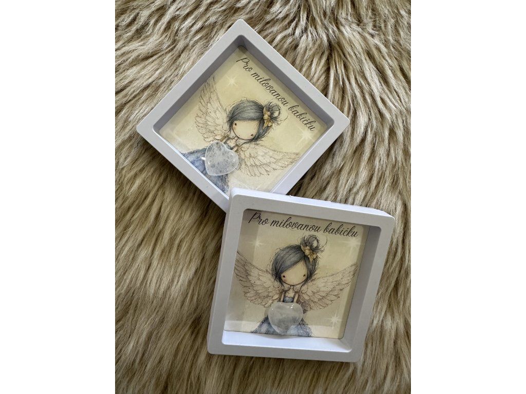 Hledáš jedinečný dárek pro babičku? Máme pro tebe elegantní plastovou bílo-šedou otevírací krabičku s minerálním srdíčkem a vloženou kartou andělky.