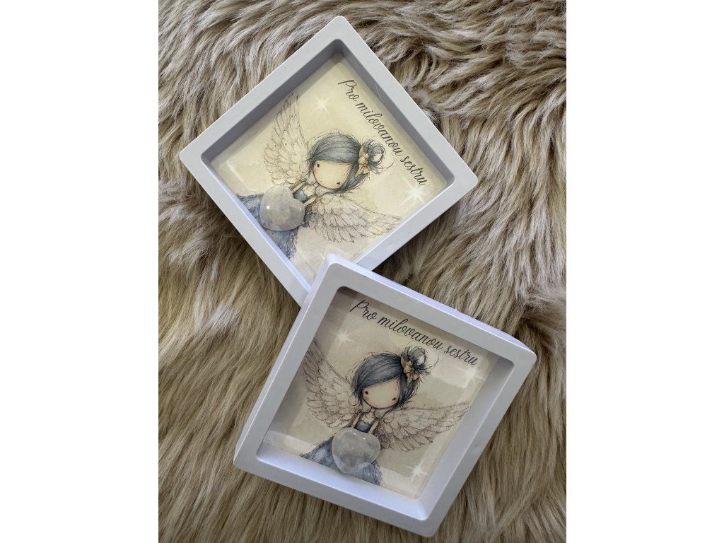 Hledáš jedinečný dárek pro sestru? Máme pro tebe elegantní plastovou bílo-šedou otevírací krabičku s minerálním srdíčkem a vloženou kartou andělky.