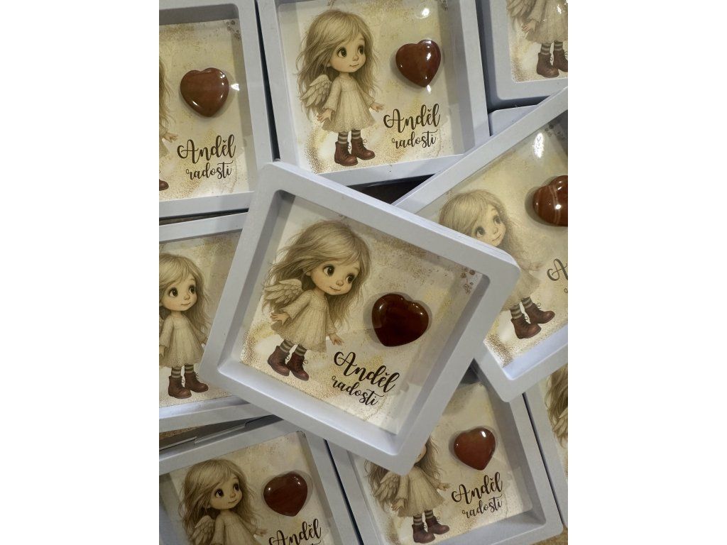 Obrázek andělky  s minerálním srdíčkem