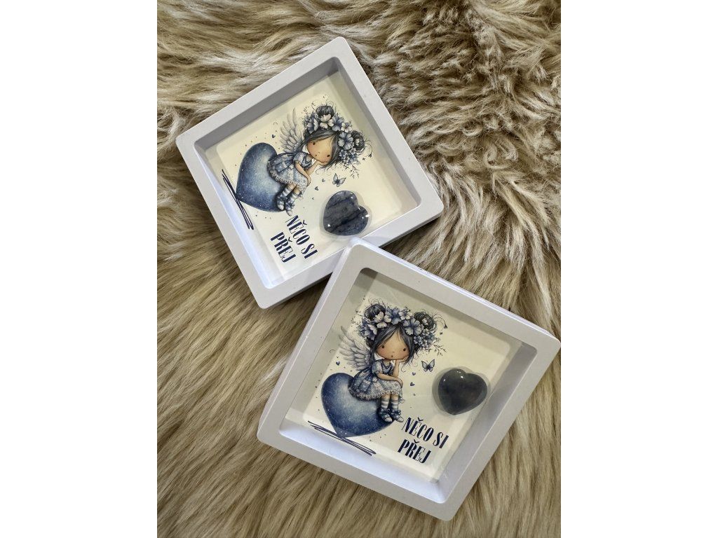 Obrázek andělky  s minerálním srdíčkem