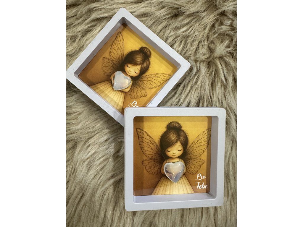 Obrázek andělky  s minerálním srdíčkem