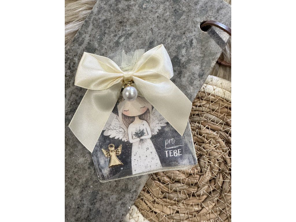 Roztomilá brož ve tvaru andílka je připravena k okamžitému darování. Je umístěna na dárkové papírové kartě a balena v jemném šifonovém smetanovém sáčku, doplněném ozdobnou perličkou, která dodává jemný a slavnostní vzhled.