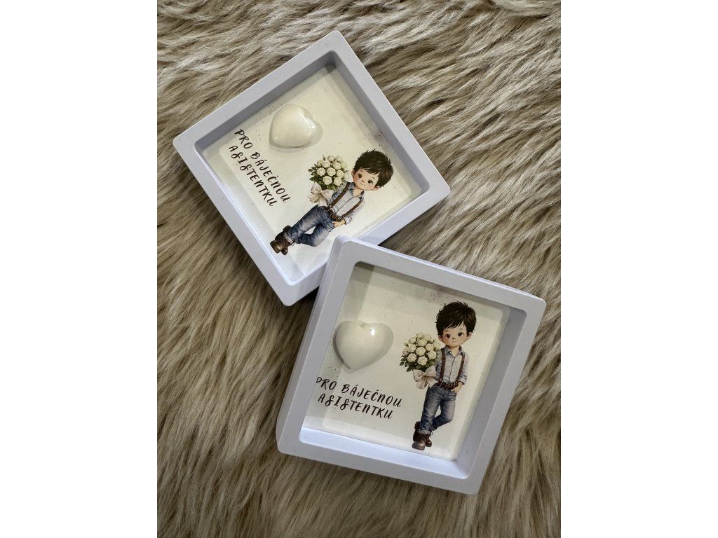 Obrázek chlapce s minerálním srdíčkem pro paní asistentku