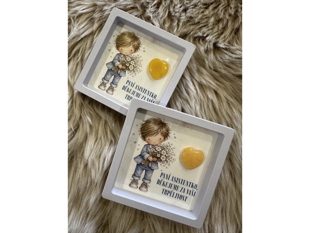 Obrázek chlapce s minerálním srdíčkem pro paní asistentku