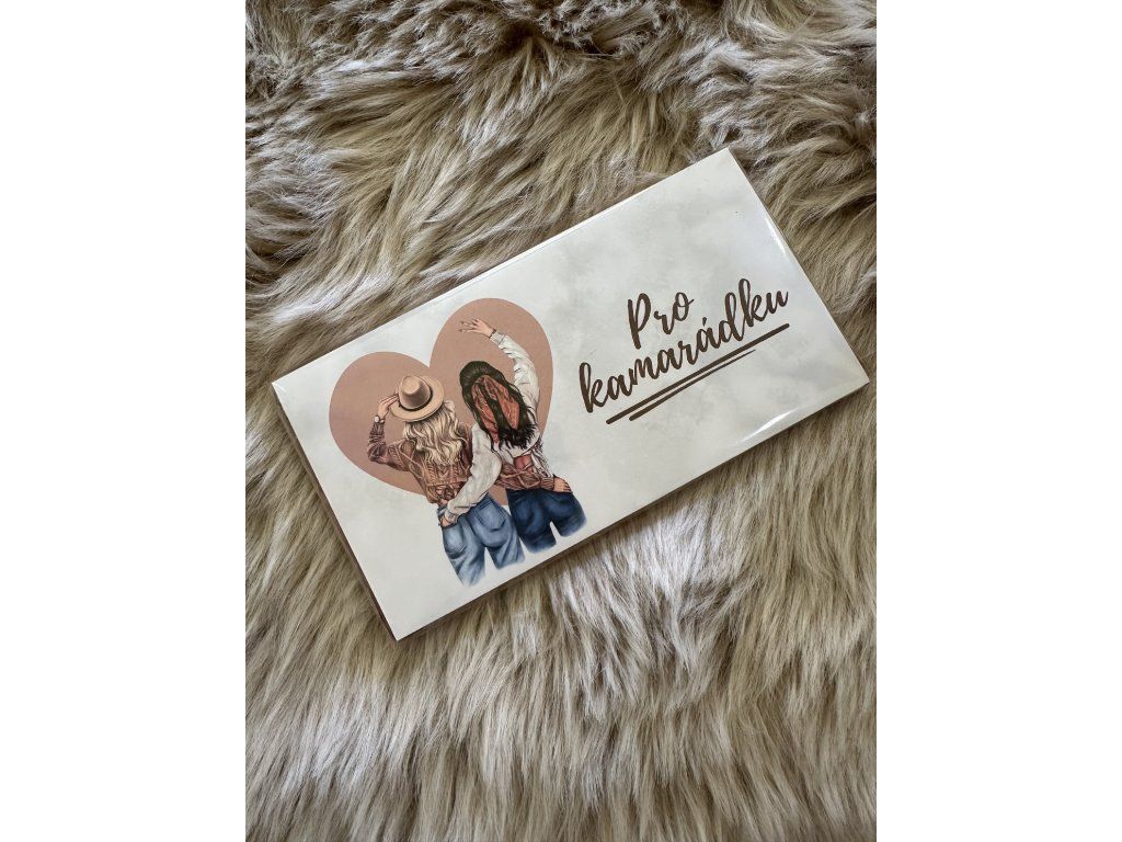 je elegantní a oblíbený dárek, kterým vyjádříte poděkování, lásku i milou pozornost. Kvalitní čokoláda potěší každého milovníka sladkého. Je  doplněná dárkovou kartičkou a zablená v celofánu, díky čemuž je připravena rovnou k darování bez dalšího balení.