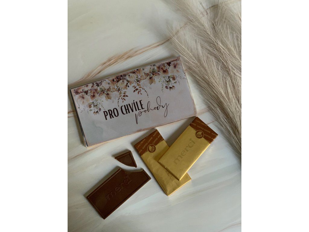 je elegantní a oblíbený dárek, kterým vyjádříte poděkování, lásku i milou pozornost. Kvalitní čokoláda potěší každého milovníka sladkého. Je doplněná dárkovou kartičkou a zablená v celofánu, díky čemuž je připravena rovnou k darování bez dalšího balení.