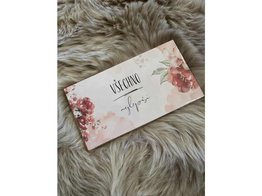 je elegantní a oblíbený dárek, kterým vyjádříte poděkování, lásku i milou pozornost. Kvalitní čokoláda potěší každého milovníka sladkého. Je doplněná dárkovou kartičkou a zablená v celofánu, díky čemuž je připravena rovnou k darování bez dalšího balení.
