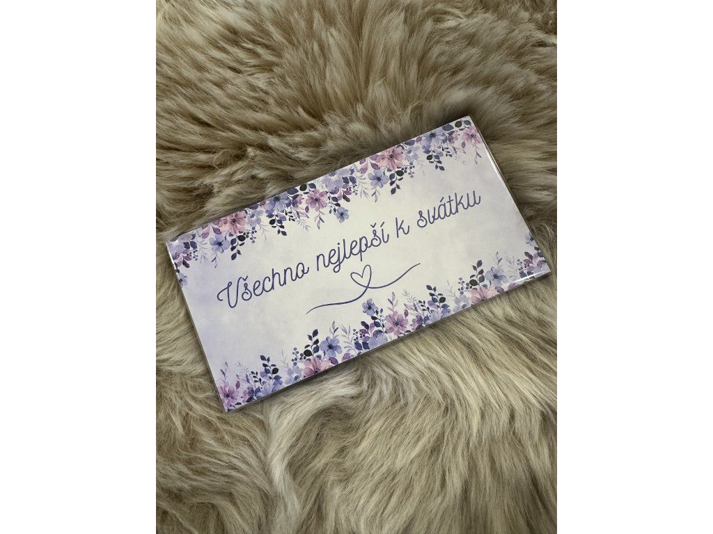 je elegantní a oblíbený dárek, kterým vyjádříte poděkování, lásku i milou pozornost. Kvalitní čokoláda potěší každého milovníka sladkého. Je  doplněná dárkovou kartičkou a zablená v celofánu, díky čemuž je připravena rovnou k darování bez dalšího balení.