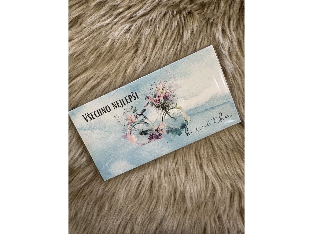je elegantní a oblíbený dárek, kterým vyjádříte poděkování, lásku i milou pozornost. Kvalitní čokoláda potěší každého milovníka sladkého. Je doplněná dárkovou kartičkou a zablená v celofánu, díky čemuž je připravena rovnou k darování bez dalšího balení.