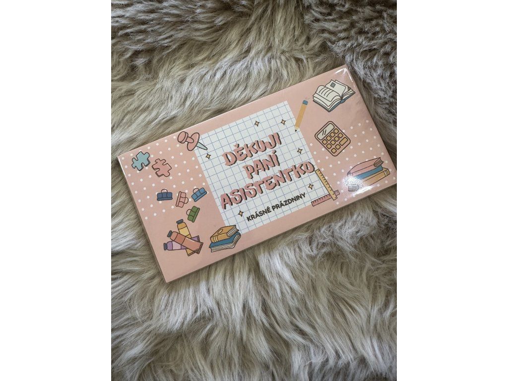je elegantní a oblíbený dárek, kterým vyjádříte poděkování, lásku i milou pozornost. Kvalitní čokoláda potěší každého milovníka sladkého. Je doplněná dárkovou kartičkou a zablená v celofánu, díky čemuž je připravena rovnou k darování bez dalšího balení.