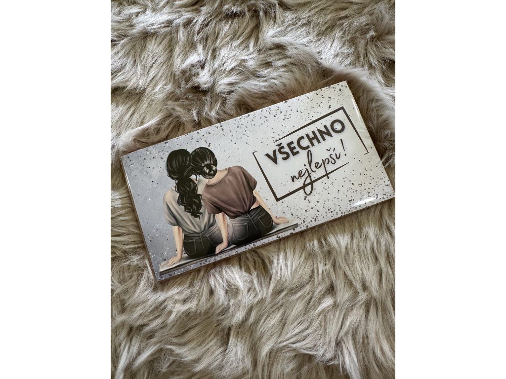 je elegantní a oblíbený dárek, kterým vyjádříte poděkování, lásku i milou pozornost. Kvalitní čokoláda potěší každého milovníka sladkého. Je  doplněná dárkovou kartičkou a zablená v celofánu, díky čemuž je připravena rovnou k darování bez dalšího balení.