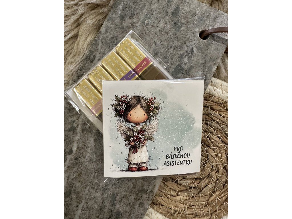 Výběr čtyř lahodných příchutí čokoládových tyčinek Merci doplněný o dárkovou vloženou kartičku.