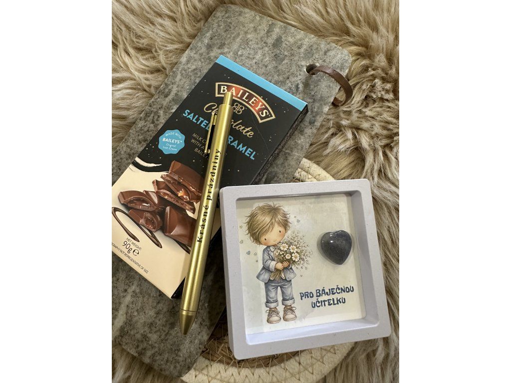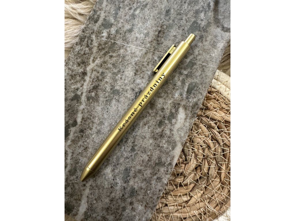 Elegantní zlatá propiskas nápisem krásné prázdniny, která potěší na první pohled i při každém psaní. Ideální milý dárek pro paní učitelku.