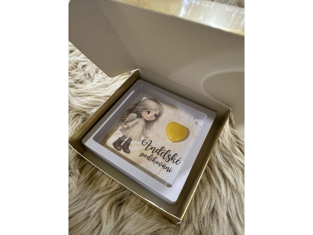 Připravili jsme si pro vás dárkové balení, do kterého můžete vložit vždy jednu krabičku s vaší vybranou andělkou (velikost plastové krabičky s minerálním srdcem je 9x9xcm).Balení si navíc můžete dozdobit podle vlastní fantazie stuhou, mašlí nebo květinou a vytvořit tak osobitý dárek přesně podle vašich představ. Ve fotkách máte malou ukázku balení :-)