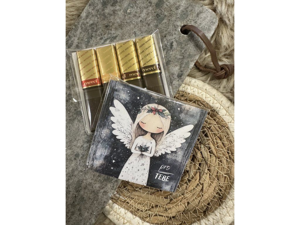 Merci čokoládové tyčinky patří mezi oblíbené čokoládové speciality vyráběné společností STORCK. Jsou známé pestrým výběrem příchutí, díky čemuž se skvěle hodí jako milý dárek nebo sladká pozornost. Čokoládové tyčinky balíme po 4 kusech a doplnili jsme je dárkovou kartičkou.