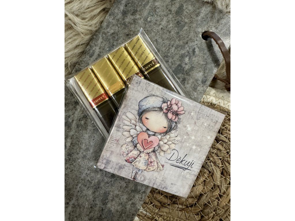 Merci čokoládové tyčinky patří mezi oblíbené čokoládové speciality vyráběné společností STORCK. Jsou známé pestrým výběrem příchutí, díky čemuž se skvěle hodí jako milý dárek nebo sladká pozornost. Čokoládové tyčinky balíme po 4 kusech a doplnili jsme je dárkovou kartičkou.