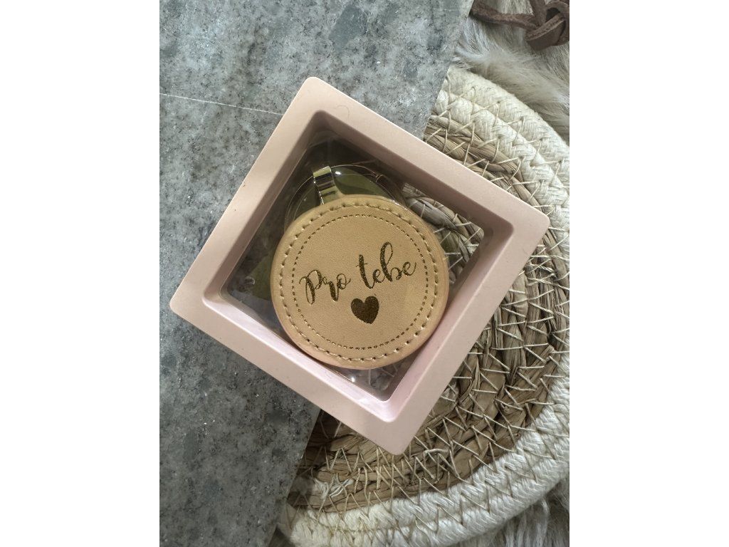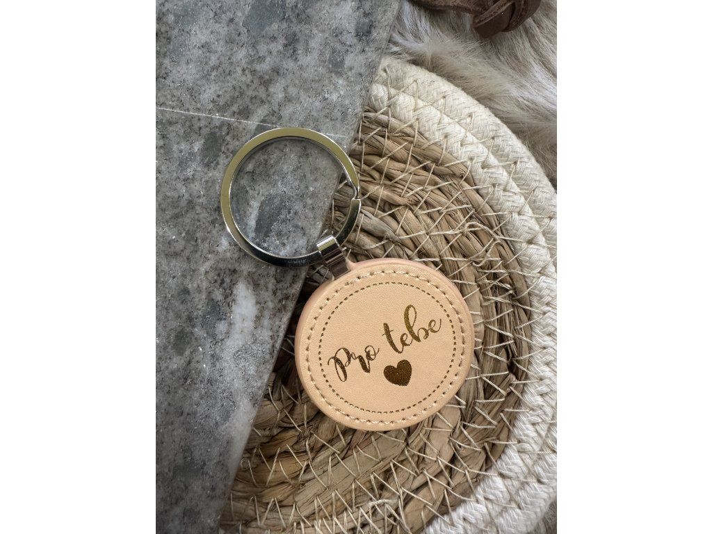 Kulatá klíčenka z koženky s nápisem – dárkově balená