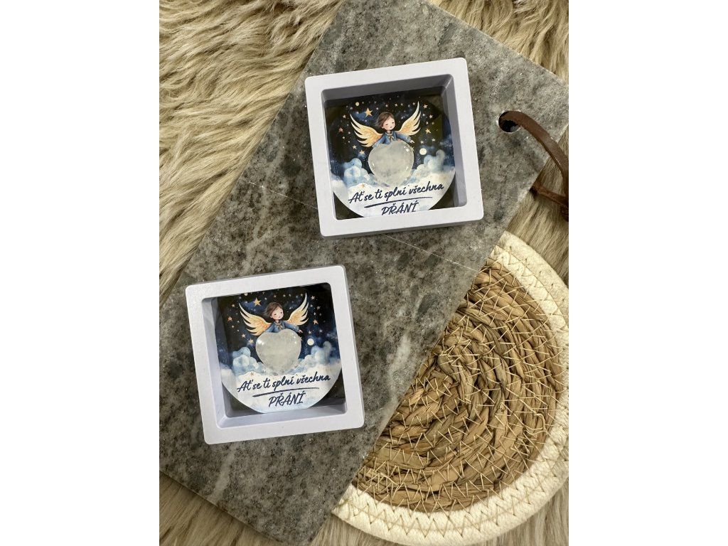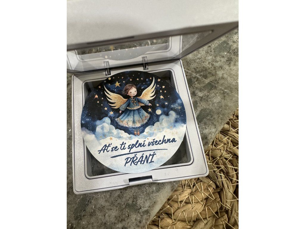 Hledáš originální dárek? Máme pro tebe elegantní plastovou bílo-šedou otevírací krabičku s minerálním srdíčkem a samolepkou andělky.
