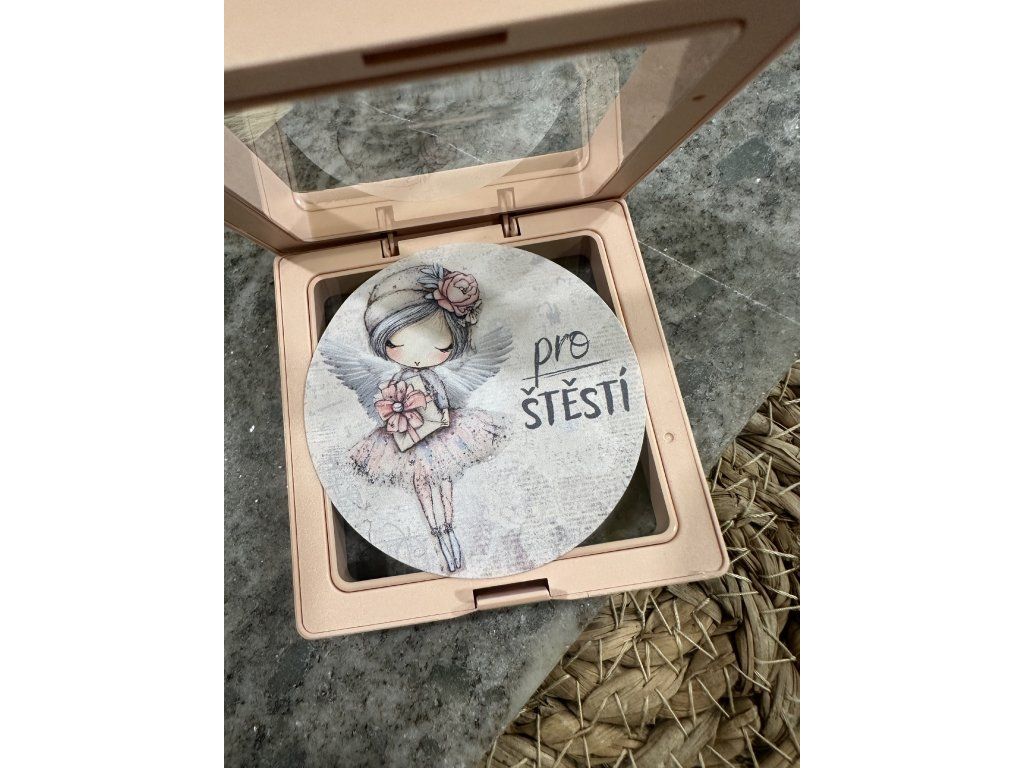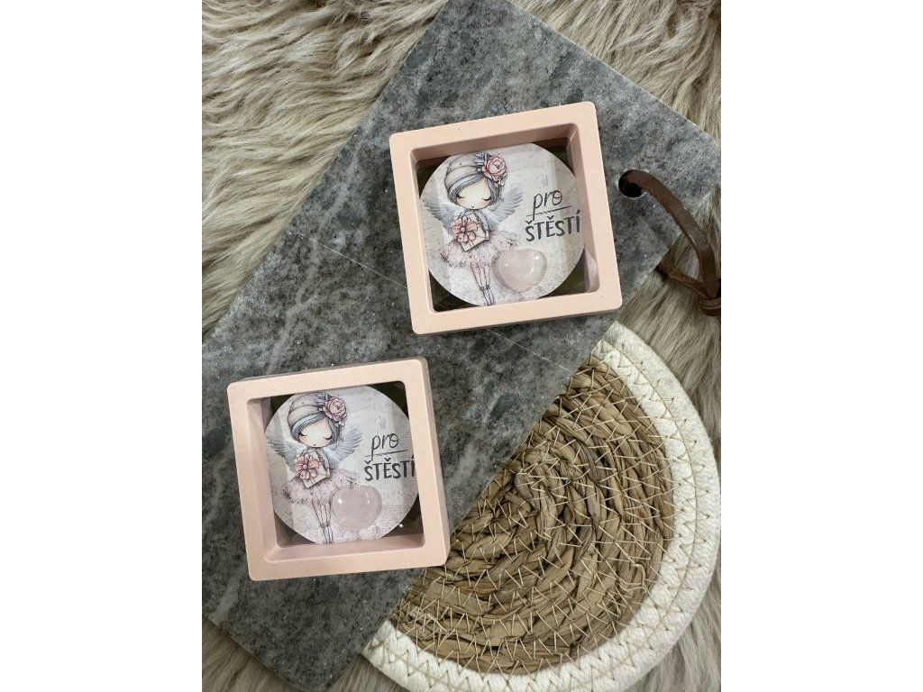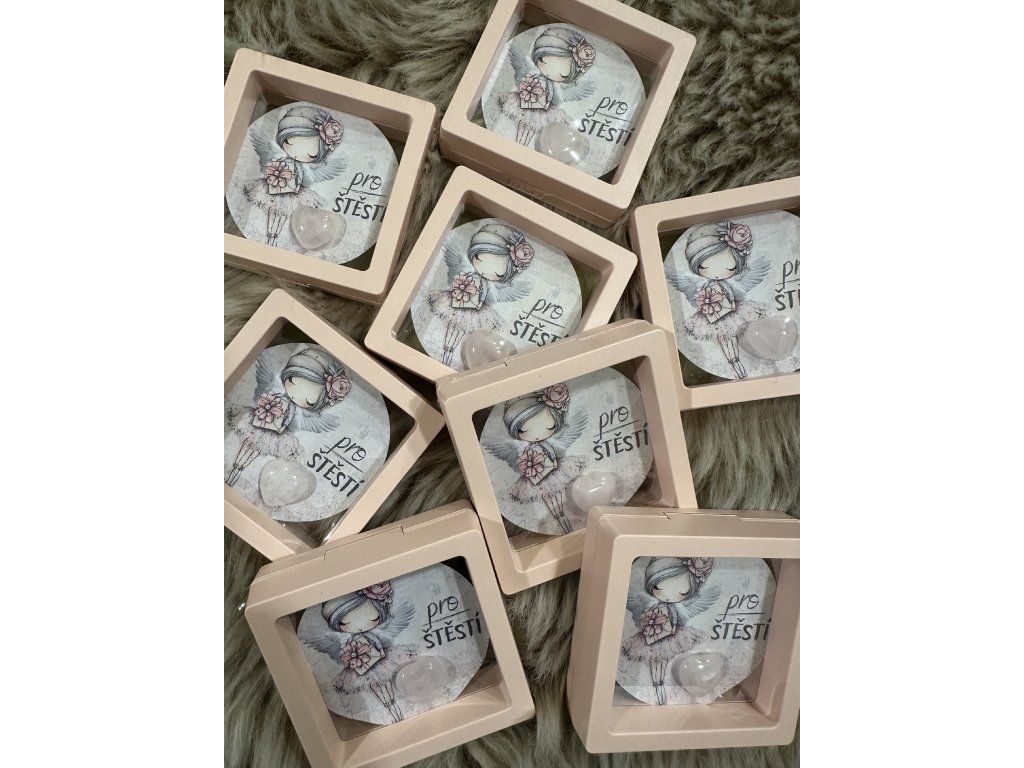 Hledáš originální dárek? Máme pro tebe elegantní plastovou růžovou otevírací krabičku s minerálním srdíčkem a samolepkou andělky.