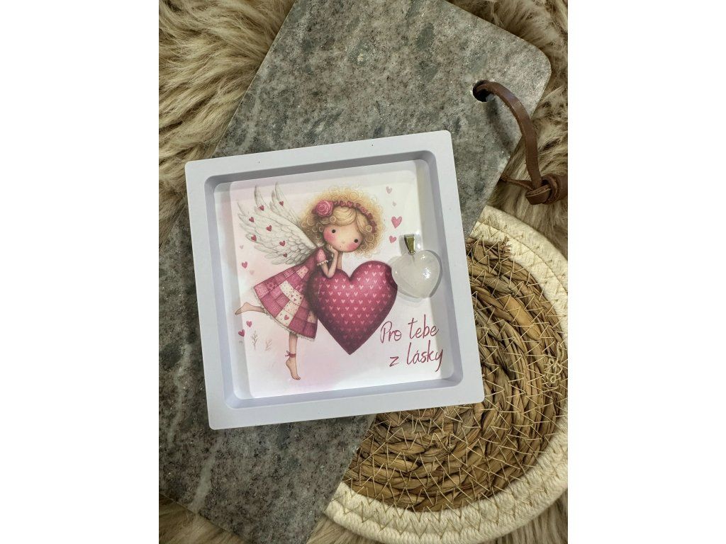 Obrázek andělky s minerálním srdíčkem