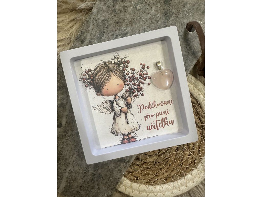 Obrázek andělky s minerálním srdíčkem