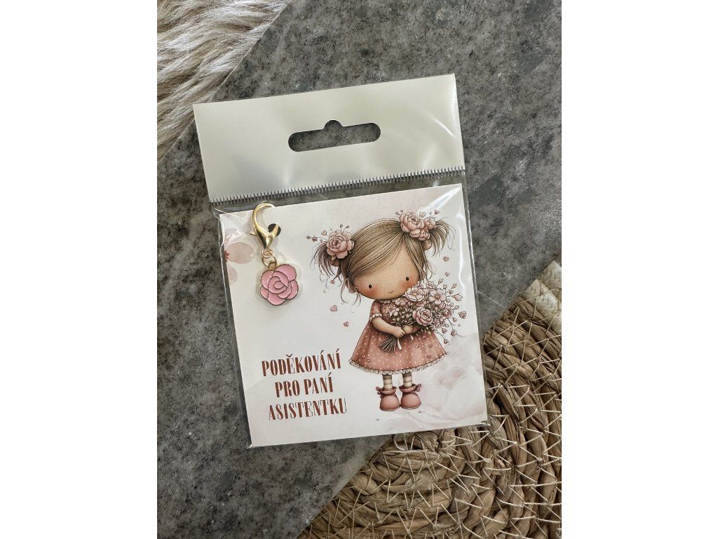 Drobný, ale milý dárek jako poděkování paní učitelce či paní asistentce za celý školní rok plný trpělivosti, péče a laskavosti. Je připnut na dárkové kartičce , která podtrhuje výjímečnost a dělá z něj krásný a osobní dárek pro obdarovanou osobu.