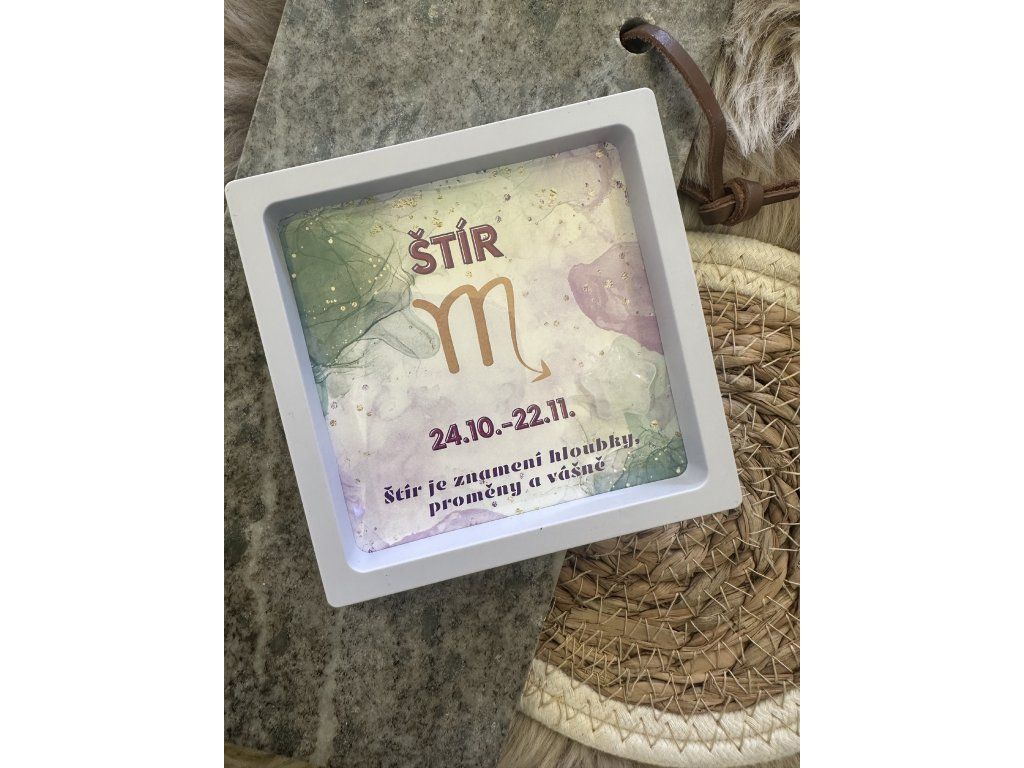 Obrázek s oboustranným popisem a charakteristikou pro znamení Štír